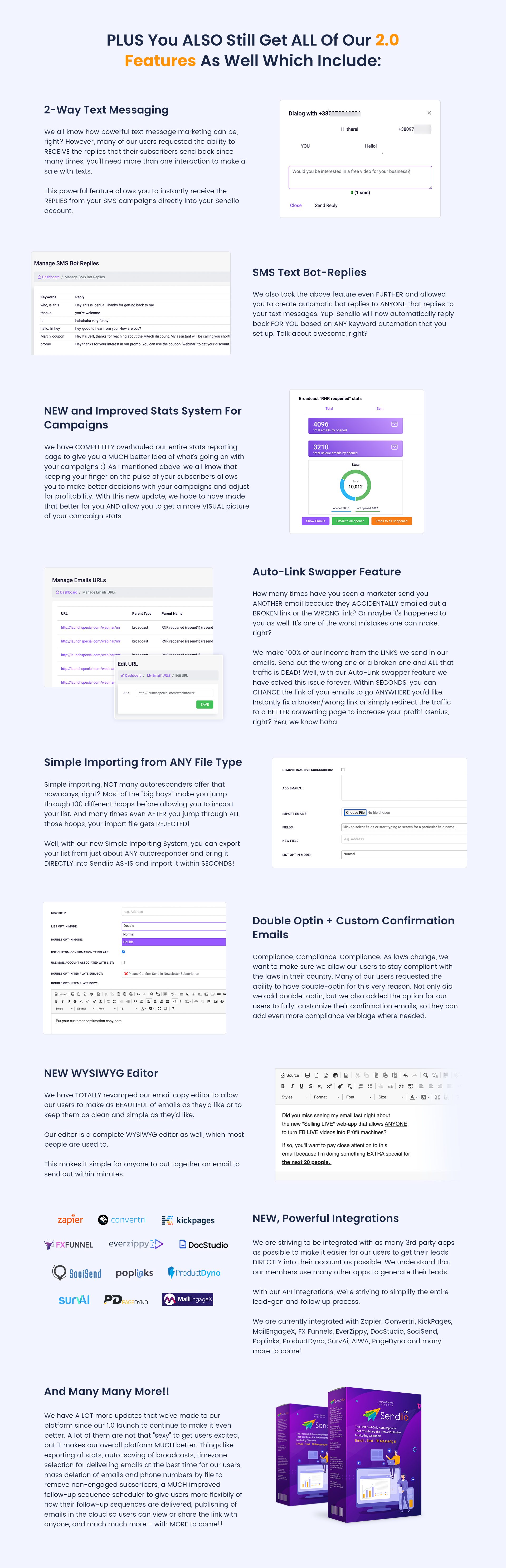 Sendiio is the 1st and ONLY ARTIFICALLY INTELLIGENT autoresponder that combines the power of email marketing, Text Message Marketing and Facebook Messenger Marketing ALL under ONE, CENTRAL Dashboard - at a ONE-TIME price!