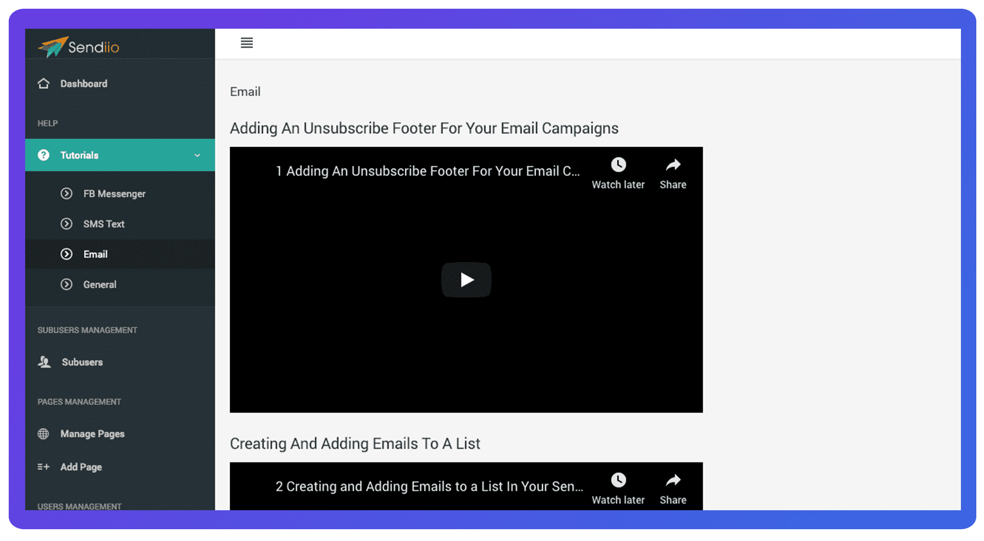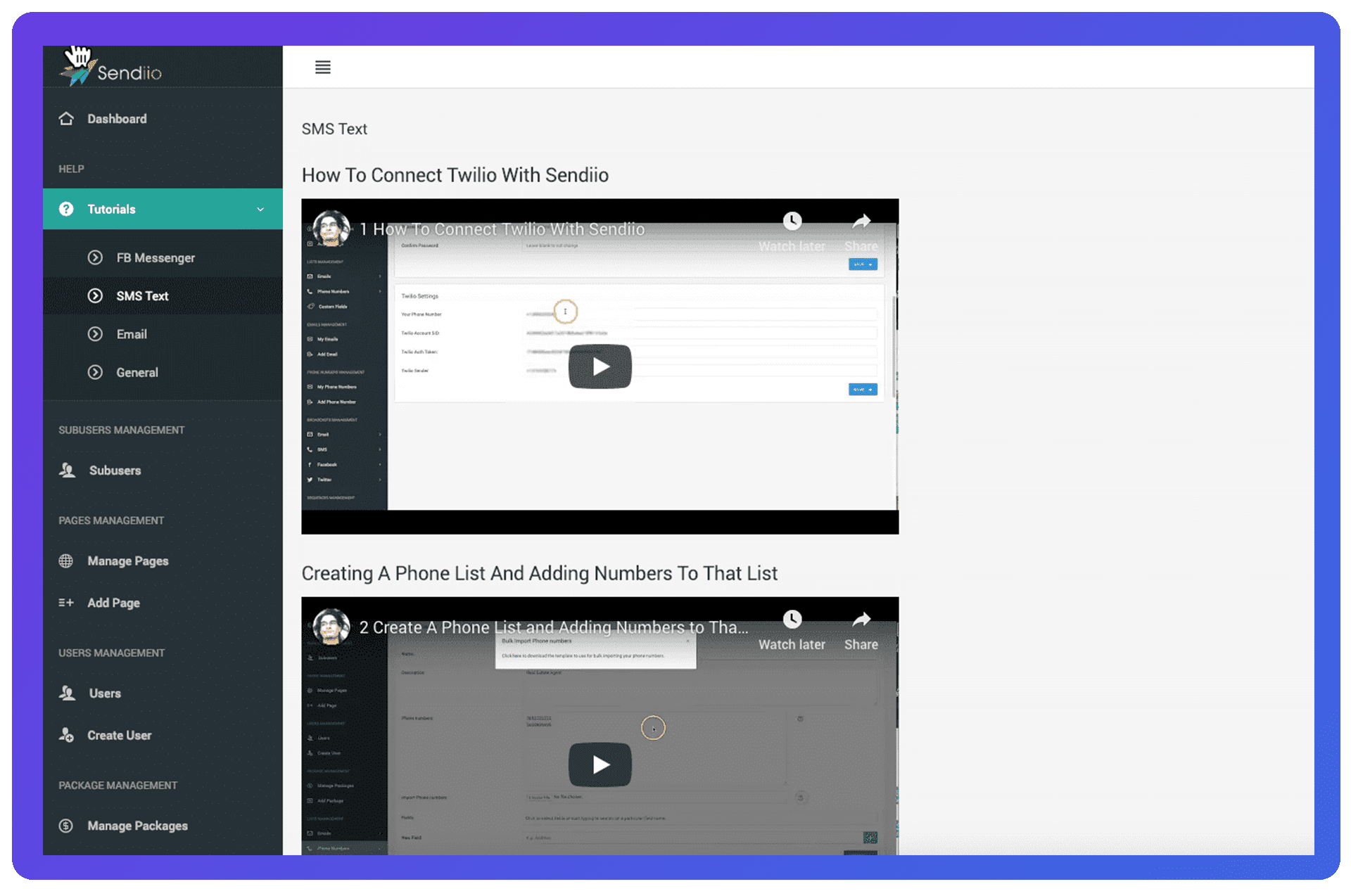 - Complete Step-By-Step Training Tutorials for EVERY part of Sendiio