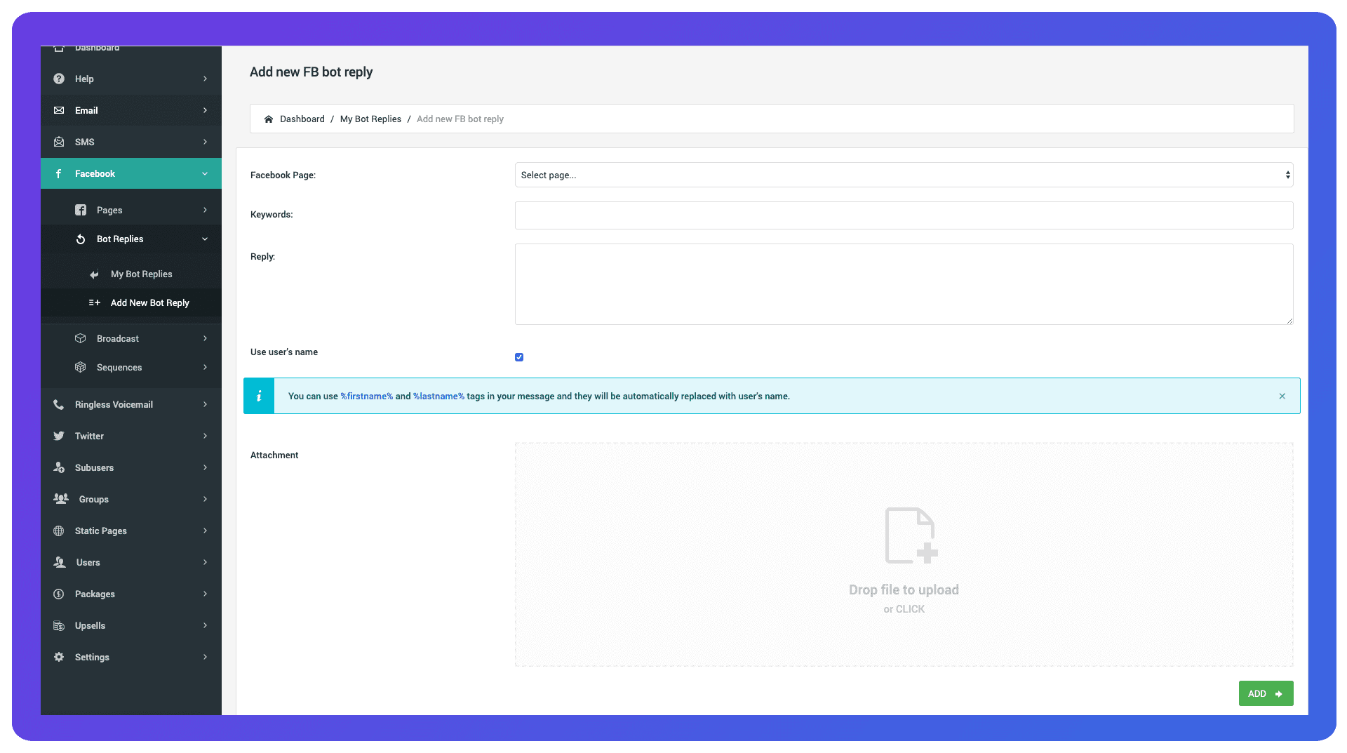 - Connect up to 5 FB Pages to automate their FB Messenger