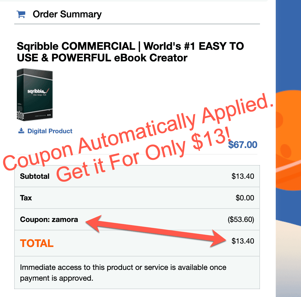 CORRECTION: Coupon Code "Zamora" Slashes The Price